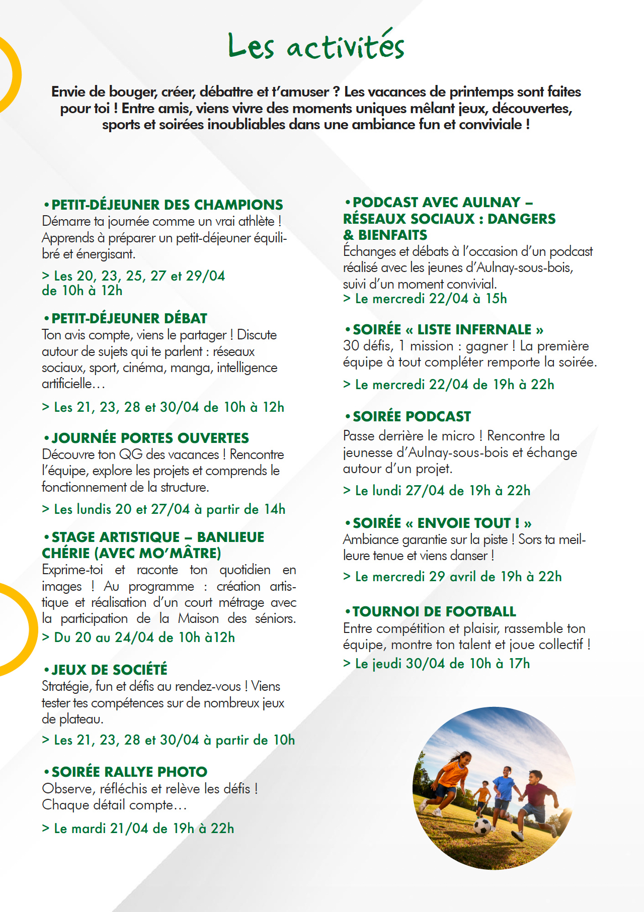 Les vacances de printemps à la Maison de la jeunesse