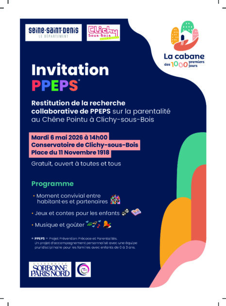 Le rendez-vous est fixé au mardi 6 mai à 14h, à l’auditorium du conservatoire de Clichy-sous-Bois. Les familles suivies par le PPEPS et la PMI, ainsi que les acteurs associatifs et institutionnels du territoire, y sont conviés.